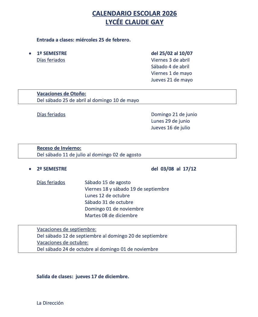 El Lycée Claude Gay es un establecimiento homologado de la red de la Agencia para la educación Francesa en el extranjero (AEFE). Cuando nos elige está optando por una educación de calidad que cumple para las clases primarias (maternelle y enseñanza básica) con los requisitos, programas y métodos establecidos por el Ministerio de Educación Nacional Francés. También opta por un establecimiento de excelente reputación en nuestro país anfitrión.